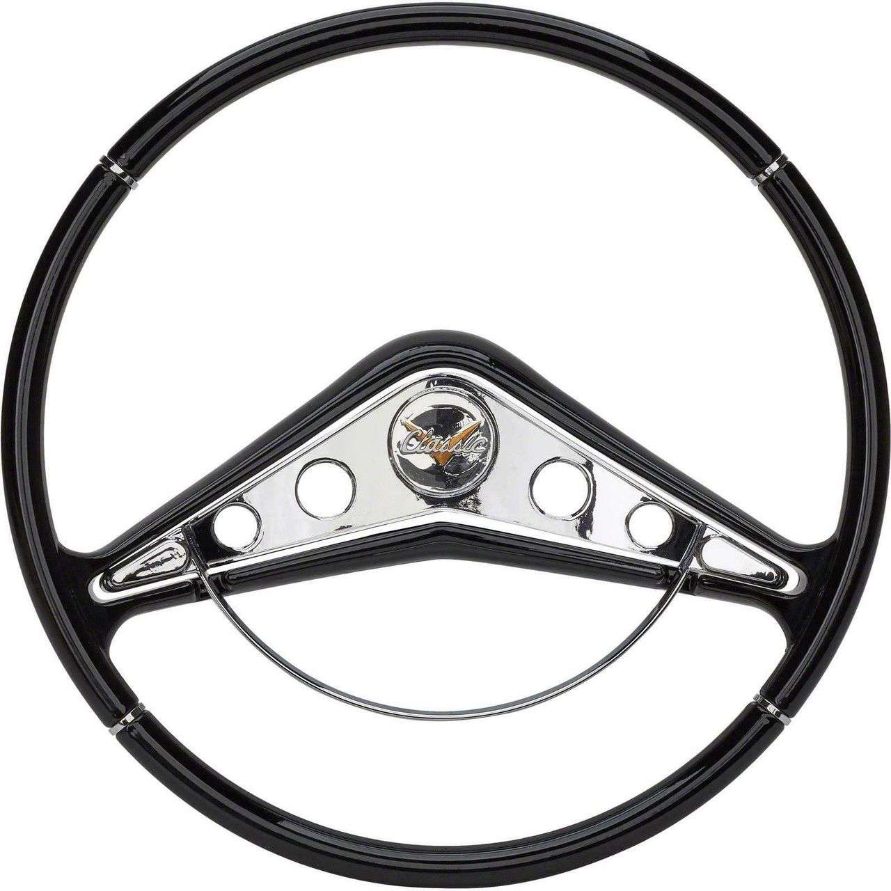 This 15-inch American-Retro steering wheel replaces the original 1958-60 18" stock GM wheel from vehicles of that vintage. This sporty replacement gives your car an original look, yet provides drivers the comfort and handling of a 3-inch smaller diameter modern size wheel, a benefit especially for cars converted to modern power steering. Don't wrestle with that "bus-size" steering wheel any longer! American-Retro's new smaller steering wheel is the answer!