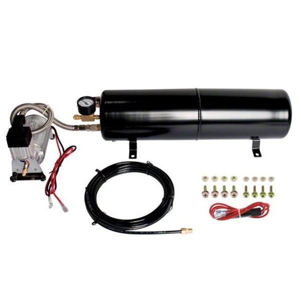 When you add your awesome new 3 or 4 Train Horns, you will need something to power them with. This quality, Heavy Duty Air Compressor And Tank Kit, will fill the need and then some. Made from durable material, this system offers an extended tank, so you can really sound off and let everybody know you are moving on! This kit also includes an auto on/off switch, air compressor, tank and electrical wiring and connectors for installation. This system will give you more than enough power for your air horn system. Do not settle for less than the best. Trust Ecklers for all your accessorie, horn and now air compressor and tank kit needs.