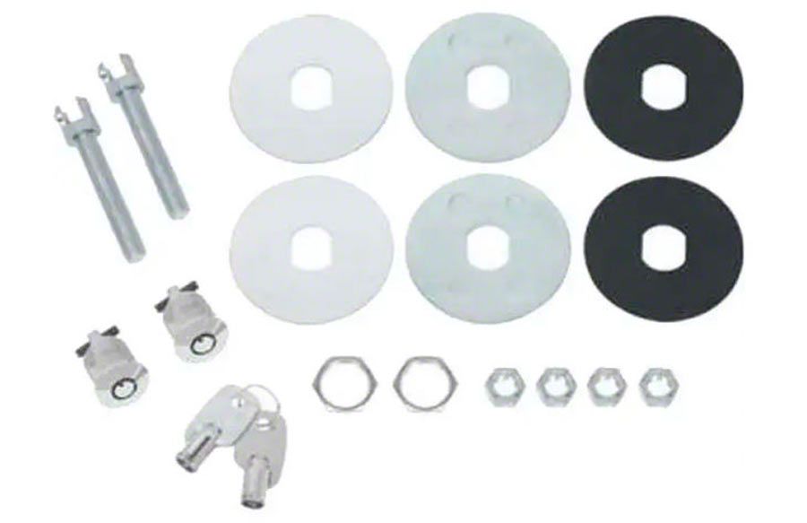 You have spent a lot of money making improvements to your engine, with high performace parts, chrome and billet accessories. Ecklers offers this High Security Locking Hood Pin Set for your security. This kit comes with high quality chrome plated fully threaded pins with nuts and two keys. With this locking hood pin set you can have the piece of mind knowing that your engine and all those high dollar accessories have an extra measure of security. This locking hood pin set can replace standard hood pins, it does require using your factory hood latch and drilling holes in your hood for installation if required.