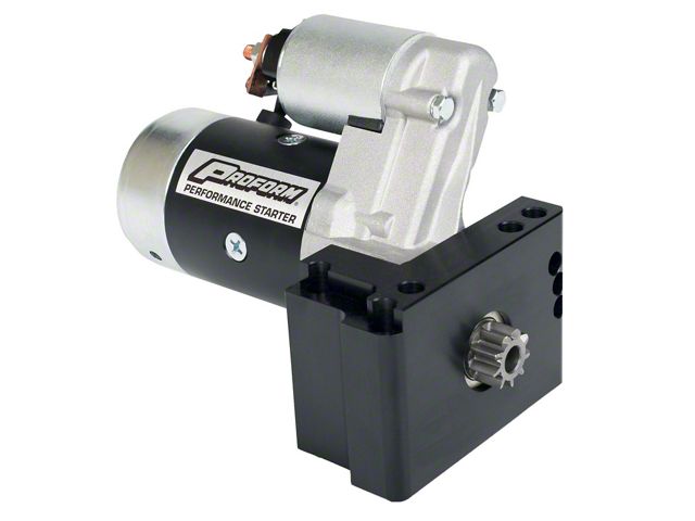 This high-torque, gear reduction design, staggered mount starter has a 12V, 2.2KW motor and a torque ratio of 15:1. The offset design results in more clearance between the oil pan and the starter, and can be rotated for additional chassis clearance. 3.75-to-1 sealed gear reduction drive and full ball bearing construction. Starter is 100% NEW, not rebuilt with remanufactured parts! Fits small and big block V8 engines, as well as most V6 engines.