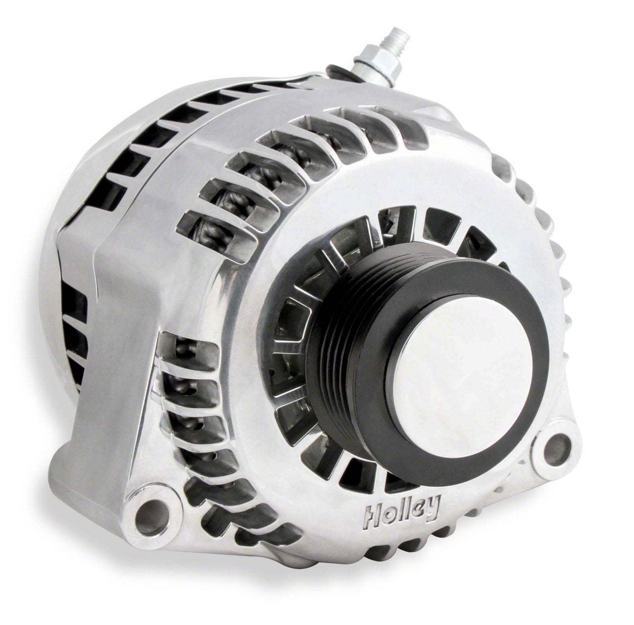 With performance engines pushing redlines up higher and higher, alternators are being forced beyond their design. Holley’s premium alternators are specially designed to tolerate 30% higher RPMs than conventional alternators and made in the USA. If you drag race, auto-cross, or just hot-rod your ride, know this alternator won’t fly apart on you. Inside the attractive Holley housing is cutting edge technology. Every component was developed to produce cleaner, more efficient output compared to conventional alternators. Efficiency means you get more from a compact package. GM recently adopted this technology for the 2014 and later Corvettes. The attention to cosmetic detail on these units is above and beyond what you would expect too. The entire outside housing has been sculpted for a smooth s