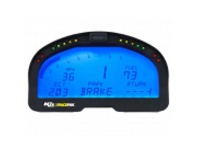 Racepak IQ3 data recorders represent an entirely new concept in data logging dashes. By placing the 32-channel data logger, 512 MB memory card, GPS board, and 3-axis G-meter inside the dash, every feature of the data system is now located in one central location. This means that only one small cable will transmit the data from all the sensors to the rear of the dash. This eliminates the need for a sensor harness, greatly reducing installation time, complexity and overall weight. The programmable shift lights are protected from sunlight by a molded shield above the lights, while the low-glare LCD display is well recessed in the housing to provide viewing in all light conditions. The rear of the dash contains the connectors for the external GPS antenna and V-Net sensor cable—plus the