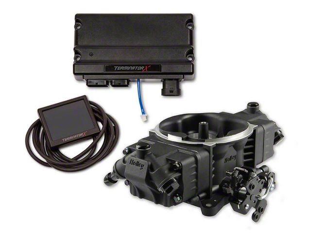 The Terminator X Stealth 4150 1250HP EFI system from Holley features 8, 100LB/HR Fuel Injectors capable of supporting up to 650 HP naturally aspirated or 1250 HP on forced induction applications. The Terminator X ECU is capable of fuel map self-learning and ignition timing control, improving idle stability, drivability, and wide-open throttle horsepower! Did we mention that the Stealth 4150 also includes transmission kick down provisions for GM TH350/400, 200R4/700R4 ? Terminator X Max Stealth 4150 kits provide transmission control for Pre-2009 GM 4L60E/4L80E Transmissions