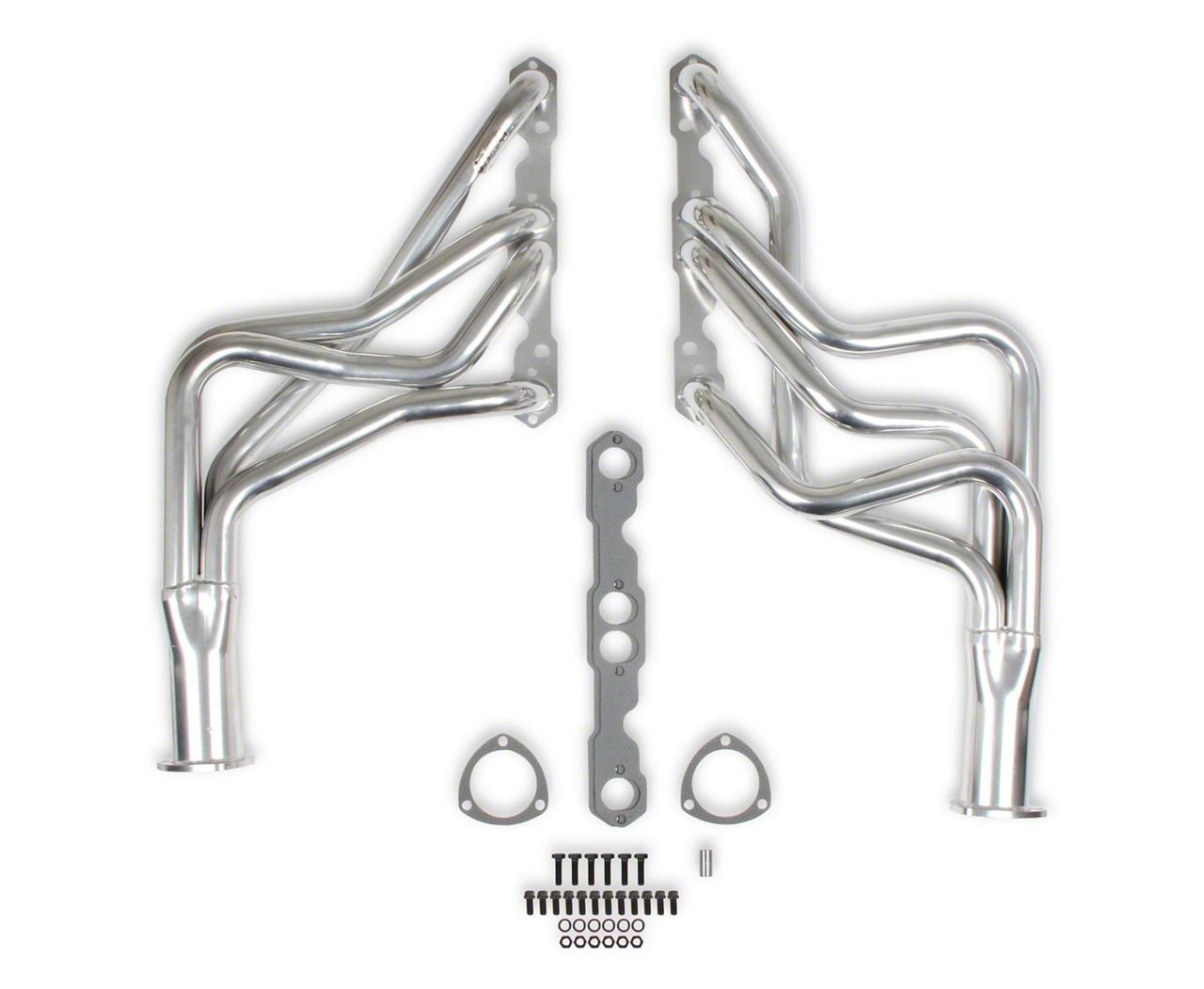 Hooker Competition headers offer the best value in the high performance header market. Designed for the value-conscious buyer, Hooker Competition headers offer premium features at a very competitive price. Made of durable 16 gauge mild steel tubing, the Hooker Competition header design utilizes a long transition collector to reduce back pressure and increase exhaust flow. A perfect sealing surface is assured with the 5/16" machined flanges. Experience has proven that this flange size is ideal to maintain header integrity and be pliable enough to seal each exhaust port. Tubing is mandrel-bent to maintain metal strength and provide consistent tube diameter at radii to maximize performance. Hooker Competition headers have a standard finish that features a heat-cured, high-heat-resistant paint. Optionally, the famous Hooker Ceramic Thermal Barrier Coating is available.