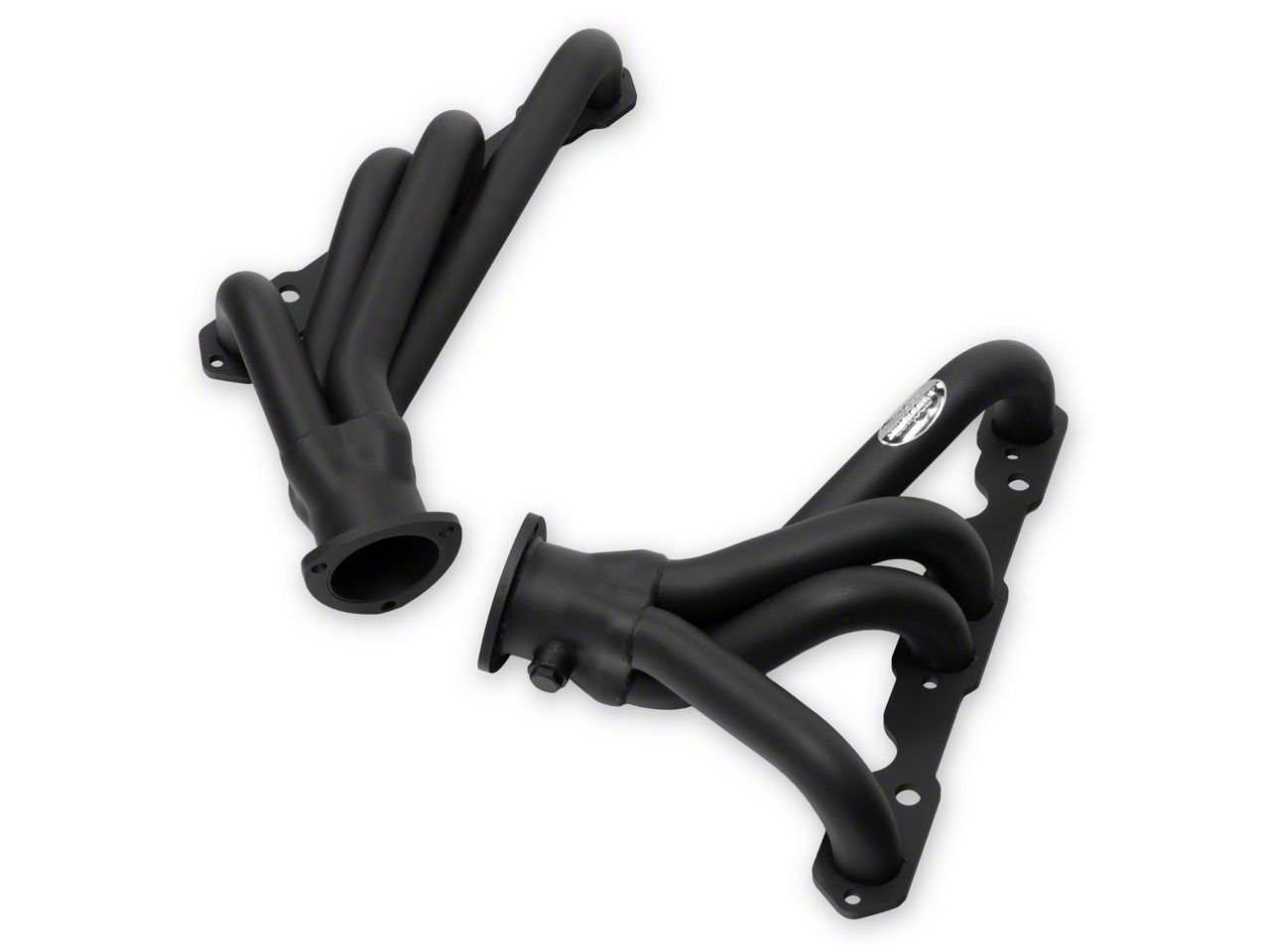 Hooker Competition headers offer the best value in the high performance header market. Designed for the value-conscious buyer, Hooker Competition headers offer premium features at a very competitive price. Made of durable 16 gauge mild steel tubing, the Hooker Competition header design utilizes a long transition collector to reduce back pressure and increase exhaust flow. A perfect sealing surface is assured with the 5/16" machined flanges. Experience has proven that this flange size is ideal to maintain header integrity and be pliable enough to seal each exhaust port. Tubing is mandrel-bent to maintain metal strength and provide consistent tube diameter at radii to maximize performance. Hooker Competition headers have a standard finish that features a heat-cured, high-heat-resistant paint. Optionally, the famous Hooker Ceramic Thermal Barrier Coating is available.