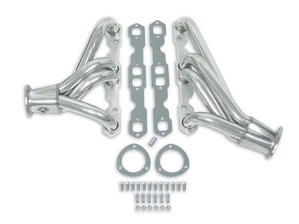 Hooker Competition headers offer the best value in the high performance header market. Designed for the value-conscious buyer, Hooker Competition headers offer premium features at a very competitive price. Made of durable 16 gauge mild steel tubing, the Hooker Competition header design utilizes a long transition collector to reduce back pressure and increase exhaust flow. A perfect sealing surface is assured with the 5/16" machined flanges, with welded O-ring seals. Experience has proven that this flange size is ideal to maintain header integrity and be pliable enough to seal each exhaust port. Tubing is mandrel-bent to maintain metal strength and provide consistent tube diameter at radii to maximize performance. Hooker Competition headers have a standard finish that features a heat-cured, high-heat-resistant paint. Optionally, the famous Hooker Ceramic Thermal Barrier Coating is available.