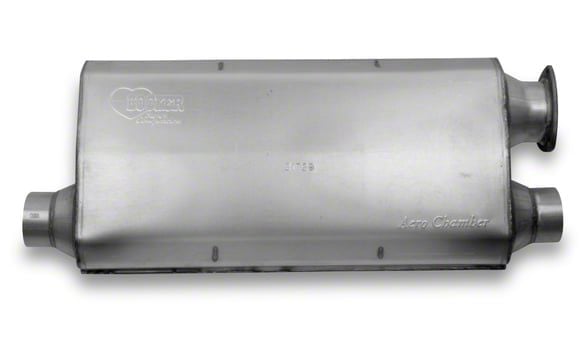 Revolutionary Sound Control. The Hooker BlackHeart Aero Chamber Offset/Dual Oval Muffler is engineered to eliminate high frequency sound waves, delivering a deep, throaty, and powerful exhaust note. This replacement muffler is designed to cancel unwanted frequencies and amplitudes, while increasing exhaust gas velocity for maximum flow, enhancing the performance and sound quality of your Camaro.