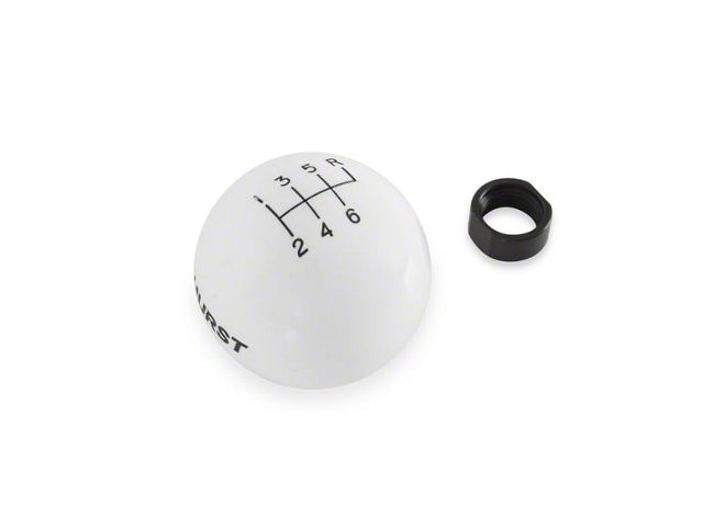 Stylish Six-Speed Knob. Made for the 5.7L Chevrolet Camaro models, this Hurst Shift Knob comes in a glossy white finish. Built from high glossy and high strength plastic, this 2 1/4 inch diameter shift knob has an engraved inlaid six-speed shift pattern for a clean and neat look. This model comes with a jam nut for easy installation.