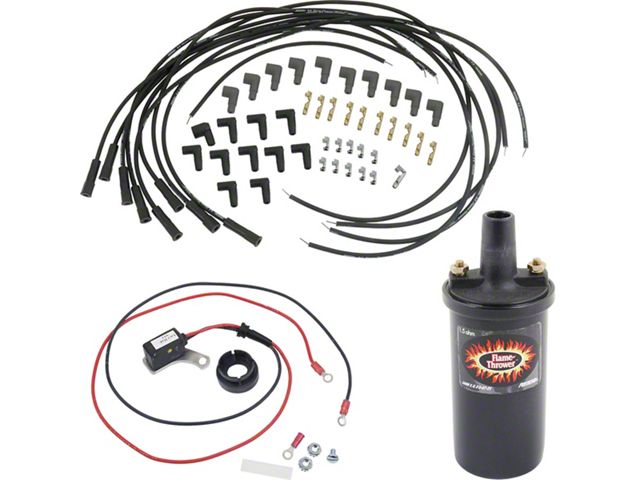 We now offer a complete kit of quality American made Pertronix Ignitor ignition products. Never change your points again! Get the Ignitor solid state ignition (to replace points), high performance Flame Thrower 8mm. spark plug wire set, and high performance Flame Thrower ignition coil in one cost cutting kit. Save time and money!