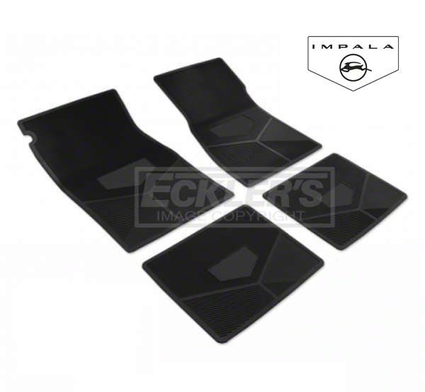 The floor mats in your 1963-1964 Impala can take a lot of abuse over the years. From rain, snow, or mud, your feet can bring in all kinds of elements to make your interior appear dingy. Worn down, ugly floor mats can ruin the inside appearance of your classic Impala. Eckler's Late Great Chevy would like to enhance the vintage look of your Impala interior with these great looking, restoration correct rubber floor mats from Legendary Auto Interiors. Every four piece set features officially licensed, molded-in logos on each mat. These mats will exactly replace your original mats and come with anti-skid backing to keep them securely in place during driving. These custom rubber floor mats from Legendary Auto Interiors will make the interior of your Impala look good as new. From racers, show car