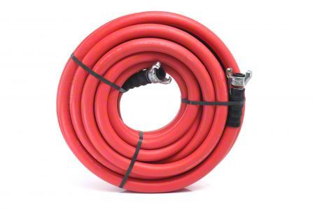 Elevate your work with our Standard Rubber Air Hose, backed by a robust 2-year warranty. Crafted from heavy-duty 100% rubber, it's built to endure. Extreme ozone and UV resistance shield against the harshest weather conditions. This hose thrives in extremes, ranging from -40°F to 190°F, thanks to high-strength polyester braided reinforcement. Enhanced with a 4-finger grip bend restrictor for ergonomic ease, it boasts an oil-resistant cover and a maximum working pressure of 300 PSI with a safety factor of 4:1. Experience the ultimate in durability and performance.