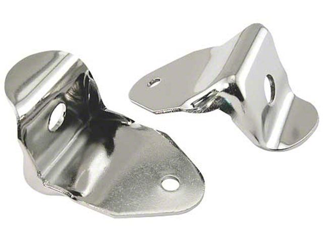 Rubber stop not included, order set # B-16761-S. These mount to the top of the frame rails just inside the center of the hood side panels. These are highly-polished stainless steel. Can be painted body color for original applications.