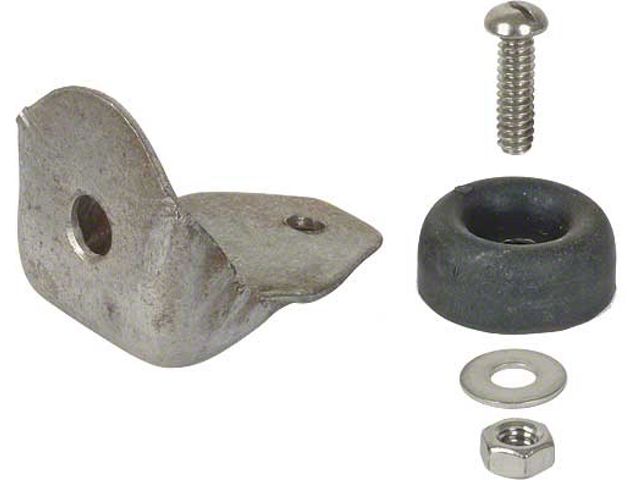 Rubber bumpers & plain steel brackets. These mount to the top of the frame rails just inside of the hood side panels. These include plain steel brackets. Also 32-34 Pickup.