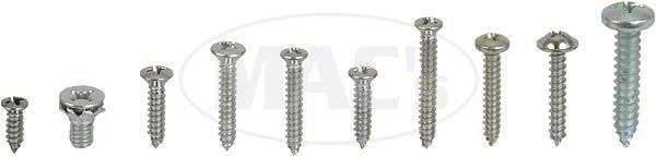 Complete kit of interior screws used on your classic. Brand new sets include all the screws used in the interior of your vehicle to include sill plates, interiot trim moldings, kick panels, seat hinge brackets. Our kits were made to save your valuable time. All in one bag with master list for each item included. Stop searching the garage floor for that old corroded hardware, we have it new!