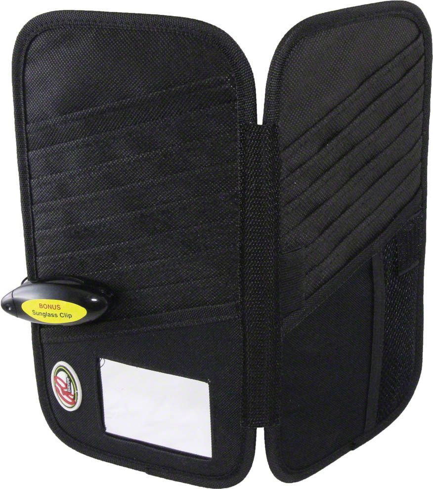 This visor organizer features an all-purpose pocket and has space to store 16 CD's or DVD's. It also has an integrated vanity mirror. Durable NY-Max material stands up to the toughest demands. It has an innovative product design and is built with durable high quality materials.
