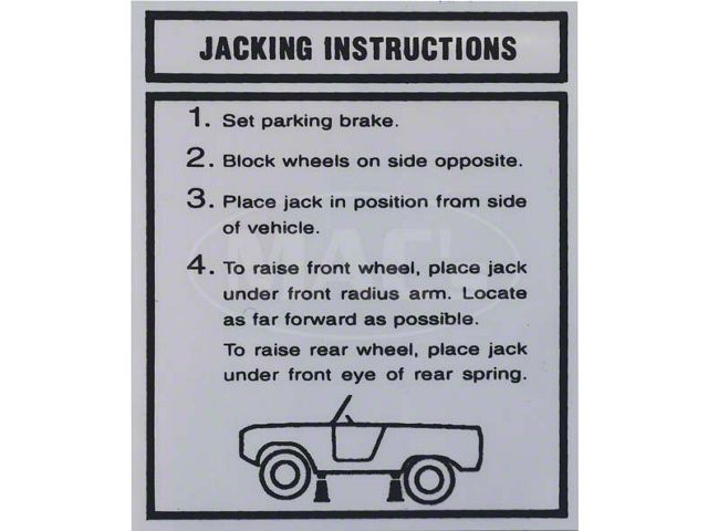 Jack Instructions Decal (66-70 Bronco)Find parts that fit my vehicle