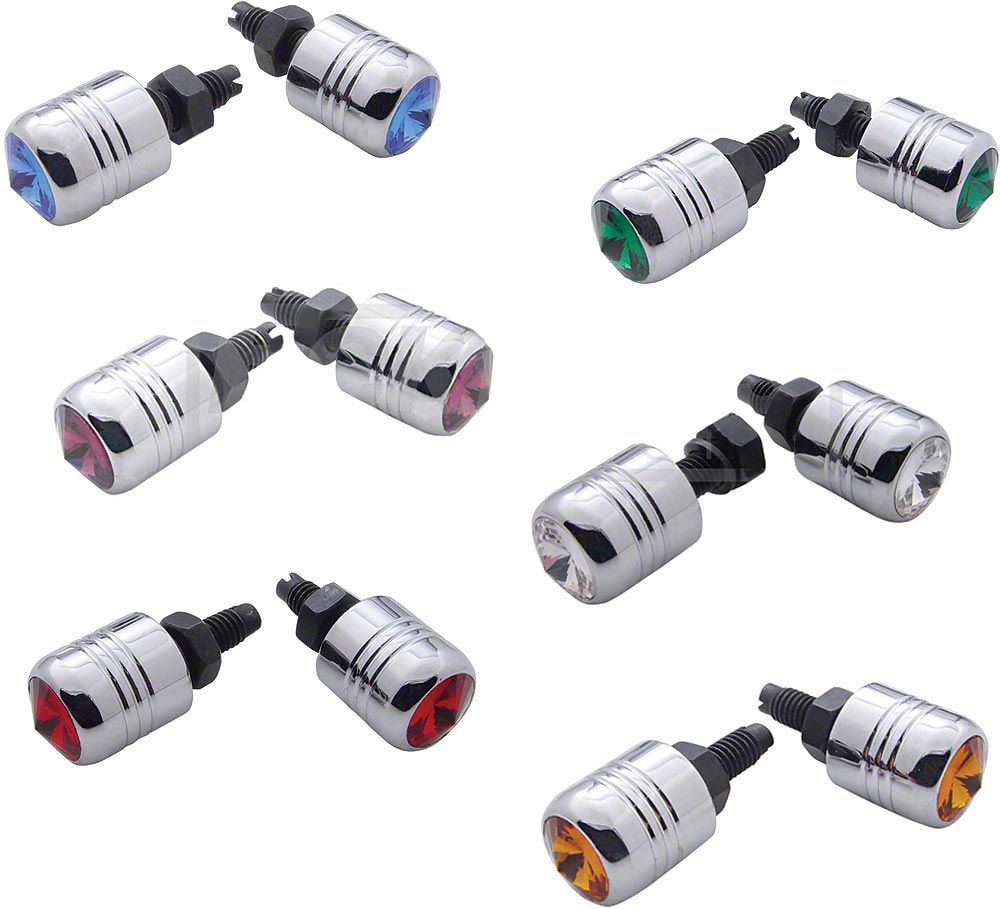 Since diamonds are a girls best friend, doesn't your best girl deserve some bling of her own? Eckler's Early Chevy introduces jeweled license plate fasteners that will give your beauty a little extra sparkle. These chrome license plate bolts come in a variety of gemstone colors to accent your 1949, 1950, 1951, 1952, 1953 or 1954 Chevy's color scheme. Whether you're partial to diamonds, rubies, emeralds, sapphires, amethyst or topaz,these jeweled license plate fasteners from Eckler's Early Chevy will complement your Chevy's classic style and beauty.
