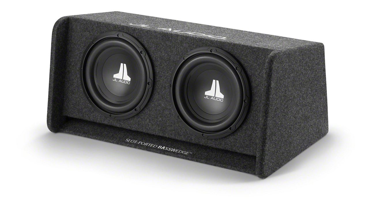 Enclosed Subwoofer System with Dual 10W0v3-4 Subwoofers, Dark Gray Carpet (600 W, 2 Ω) - Ported EnclosureThis powerful slot-ported BassWedge™ subwoofer system delivers awesome output at an unsurpassed value.The slot-port runs along the bottom of the enclosure and fires on the same plane as the woofers to produce excellent extension and response smoothness. The port mouth is flared to minimize air-flow noises.Recommended amplifier power: 150 - 600W