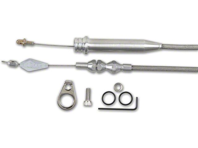 “U-Cut-to-Fit” Hi-Tech Kickdown Cables are available in a stainless steel braided housing. They are designed with a specially extruded liner for extended life of the cable – not to be confused with ordinary cable. Kickdown features aluminum fittings with ferrule to eliminate frayed cable ends. Kickdowns are adaptable for all types of manifolds including tunnel ram, blower manifolds and Weber induction systems. Complete instructions included in kit.