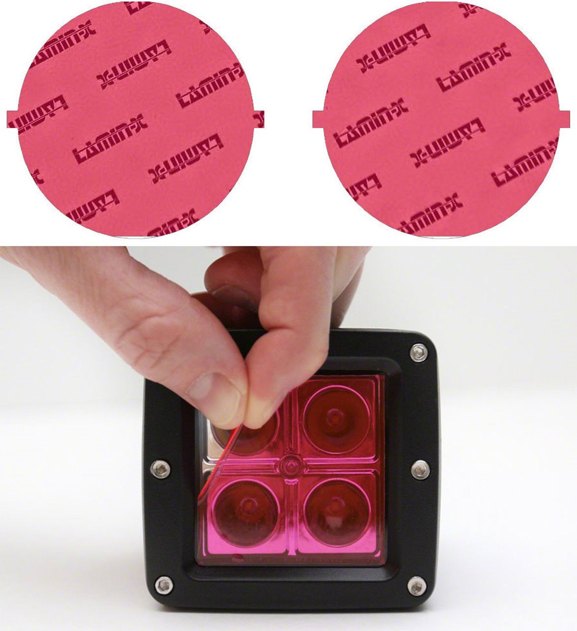 Our film covers come in 8 different colors. You can choose between Yellow, Blue, Amber, Green, Pink, Clear, Tint, and Gunsmoke. With our many options to choose from, you can customize your lights however you want while protecting it from damaging road debris. To see examples of our colors check out our Lamin-x Customer Gallery