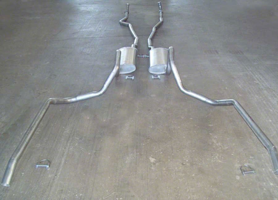 Restore your Chevy exhaust to the original showroom look with this 14 gauge aluminized steel system from Late Great Chevy. Starting at the exhaust manifolds, these new pipes extend all the way back to the over-axle pipes, efficiently routing exhaust gasses into the correct muffler before they exit through properly bent tailpipes that are cut to the precise angle GM used when these cars rolled off the assembly line. Recreate the sound of the past with this original style dual exhaust system for your Chevy Impala, Bel Air, Caprice or Biscayne. Trust Eckler’s Late Great Chevy for all your restoration and performance parts needs. Fits: 1965, 1966,1967, 1968