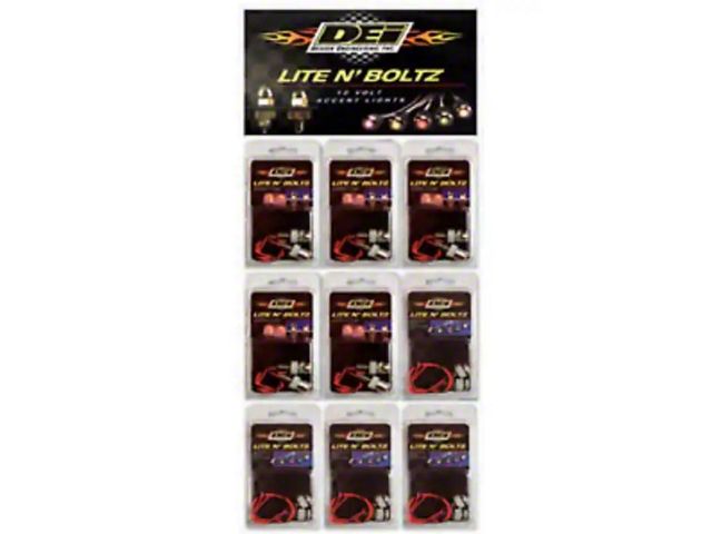 Combining both License Plate and Lighted Button Head Bolt lighting kits, this display features the nine fastest moving 12-volt LED part numbers.