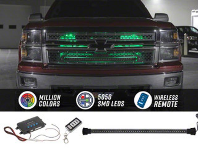 LEDGlow Grille Lighting Kit. The LEDGlow Grille Lighting Kit is designed to provide a stylish and vibrant lighting upgrade for your vehicle. This waterproof 24-inch model features a wide array of color combinations, flash patterns, and speed modes, making it a versatile and eye-catching addition to any car or truck. The kit includes a wireless remote for easy control and customization.
