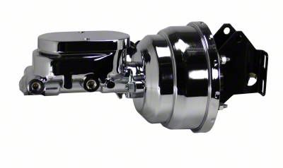 New 8" Dual Diaphragm chrome plated power brake booster kit. This 8" power booster is hand polished before a chrome finish is applied for a top quality finish. The booster mounting brackets are a direct fit to your factory firewall. Also Included in this kit is a new 1" bore master cylinder perfect for most front disc /rear drum or 4 wheel disc brake applications. Note - Will not fit 1969-72 Factory Power Brake Cars.