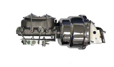 Upgrade your 2nd Generation Camaro or Firebird to a 7 in. dual diaphragm chrome power booster, 1 in. bore master cylinder with chrome cap and chrome front disc rear drum proportioning valve. This kit can be used to convert a manual brake car to power brakes or used on cars where the factory power booster interferes with valve covers or other engine components. This 7" power booster is hand polished before the chrome plating is applied for a top quality finish and the kit includes all the necessary brackets, hardware and pushrod components for an easy installation. The included proportioning valve is for disc/drum applications.