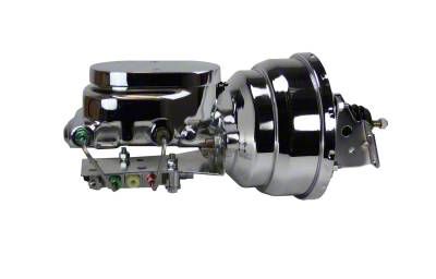 Upgrade your 2nd Generation Camaro or Firebird to a 8 in. dual diaphragm chrome power booster, 1-1/8 in. bore chrome flat top master cylinder and front disc rear drum proportioning valve. This kit can be used to convert a manual brake car to power brakes or used on cars where the factory power booster interferes with valve covers or other engine components. This 8" power booster is hand polished before the chrome plating is applied for a top quality finish and the kit includes all the necessary brackets, hardware and pushrod components for an easy installation. The included proportioning valve is for disc/drum applications.