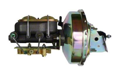 Upgrade your 2nd Generation Camaro or Firebird to a 9 in. power booster, 1 in. bore master cylinder and 4 wheel disc proportioning valve. This kit can be used to convert a manual brake car to power brakes or used on cars where the factory power booster interferes with valve covers or other engine components. This 9" power booster is hand polished before a yellow zinc finish is applied for a top quality finish and the kit includes all the necessary brackets, hardware and pushrod components for an easy installation. The included proportioning valve is for disc/disc applications.