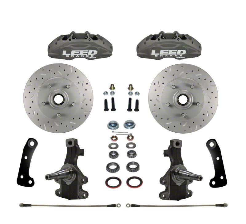 Add the safety, reliability and performance of disc brakes to your vehicle with our Max Grip Lite drum to disc brake conversion. In this kit you receive everything you need to mount Max Grip 4 piston disc brakes and 2 inch drop spindles to the control arms of your vehicle. All components used in these kits are new high quality, precision machined products. Includes forged aluminum Max Grip Lite 4 piston calipers and Max Grip XDS cross drilled, slotted, and zinc plated rotors. Reduce brake fade and increase your braking performance with this modern easy to install disc brake concersion. Includes new 2 inch drop spindles.