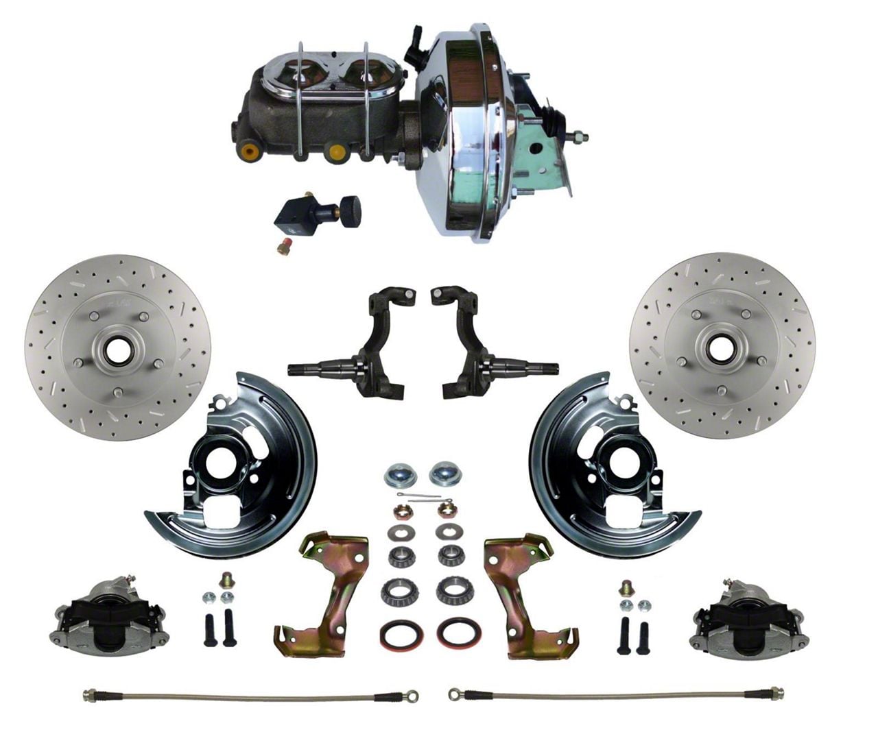 Add the safety, reliability and performance of disc brakes to your vehicle with our drum to disc brake conversion. In this kit you receive everything you need to mount single piston disc brakes to the control arms of your vehicle. All components used in these kits are new high quality, precision machined products. Reduce brake fade and increase your braking performance with this hi-performance cross drilled, slotted & zinc plated rotor. With a cross drilled and slotted rotor you remove gases that build up between the brake pad and rotor during heavy braking. The removal of this gas will give you better contact between the brake pad and rotor increasing your braking Power Front Disc Brake. Oh yea, they look pretty cool too!