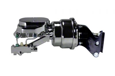 New 7" Dual Diaphragm chrome plated power brake booster, master cylinder & disc/disc proportioning valve combo. This 7" power booster is hand polished before a chrome finish is applied for a top quality finish. The black powder coated mount and pushrod assembly is a direct fit to your factory firewall for that fresh factory look. Also included in this kits is a new chrome 1-1/8" bore flat top master cylinder and proportioning valve equipped to work with 4 wheel disc applications.