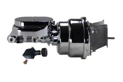Compact-10 Series 7" Dual Diaphragm chrome plated power brake booster. This 7" GM brake booster & master cylinder kit is hand polished before a chrome finish is applied for a top quality finish. The 1-1/8in Bore chrome aluminum master cylinder is ideal for most disc/drum and 4 wheel disc brake applications. The Compact-10 mounting bracket and push rod assembly is a direct fit to your factory firewall. The Compact-10 series boosters are designed to mount closer to the firewall at a more natural angle than a factory style booster. This type of mount gives you the look & brake performance you want out of your truck.