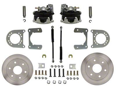 In this K10/C10 rear disc brake conversion kit we provide a 11.625 in. vented brake rotor and heavy duty 54mm single piston caliper with built-in parking brake and semi-metallic brake pad for optimum performance. The brake calipers and brackets have a bright zinc plated finish for corrosion protection and a clean look. Adapters are also included for easy installation of most stock and aftermarket parking brake cables. This kit is designed to fit into the stock C10 15" wheels as well as most aftermarket 15" and larger wheels. A clean look, great performance and easy installation!