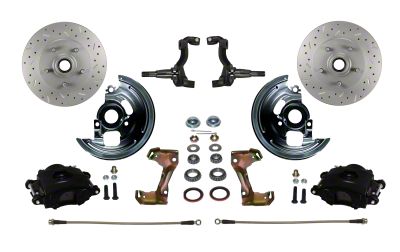 Add the safety, reliability and performance of disc brakes to your vehicle with our drum to disc brake conversion. In this kit you receive everything you need to mount Black Powder Coated single piston disc brakes to the control arms of your vehicle. All components used in these kits are new high quality, precision machined products. Reduce brake fade and increase your braking performance with this hi-performance cross drilled, slotted & zinc plated rotor. With a cross drilled and slotted rotor you remove gases that build up between the brake pad and rotor during heavy braking. The removal of this gas will give you better contact between the brake pad and rotor increasing your braking power. Oh yea, they look pretty cool too!