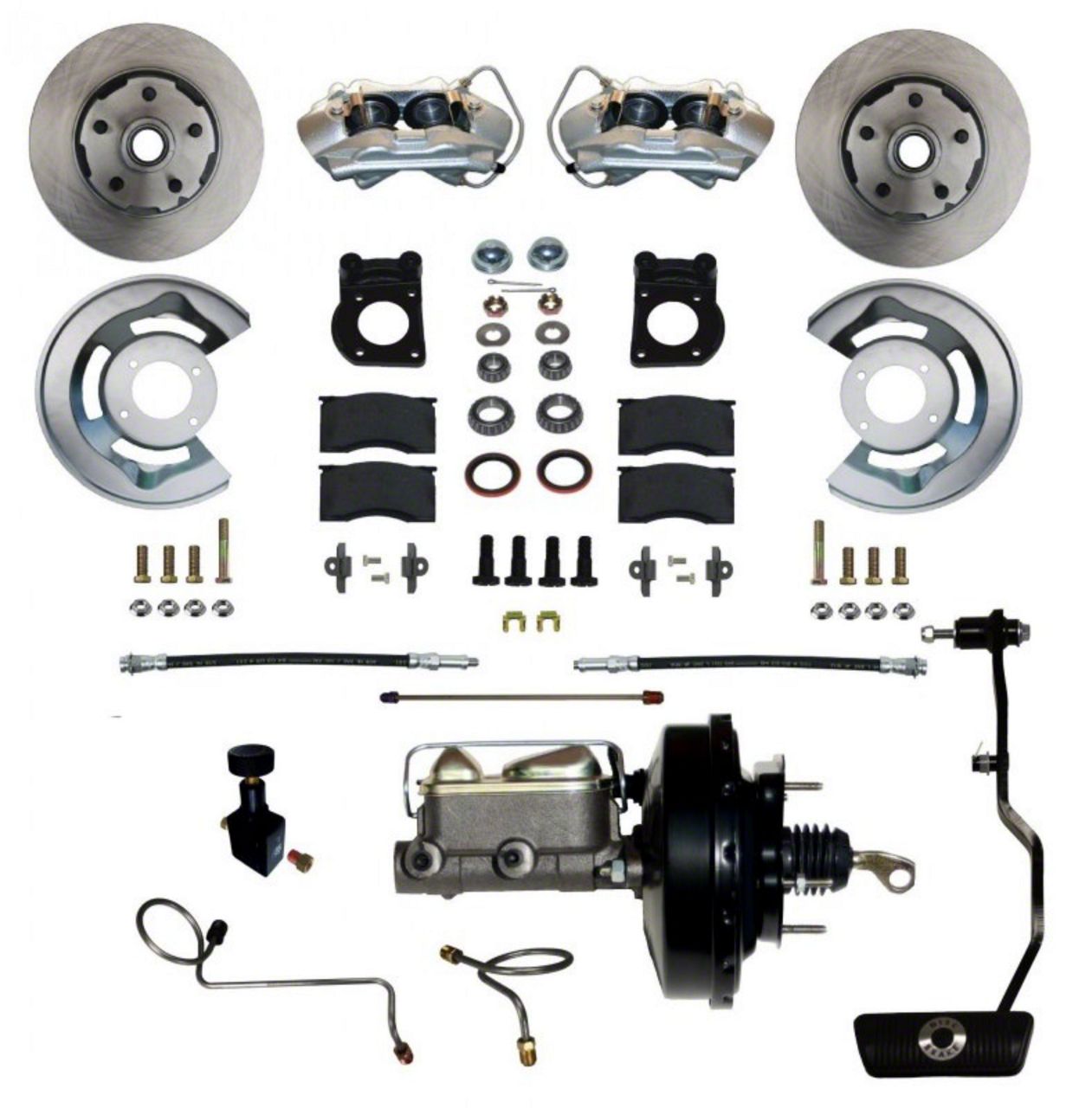 Add the safety, reliability and performance of disc brakes to your vehicle with our drum to power disc brake conversion. In this kit you receive everything you need to mount factory style 4 piston disc brakes to the original drum brake spindles currently on your vehicle. This kit is an easy installation mounting to all factory mounting locations. All components used in these kits are new high quality, precision machined products. A great kit with a factory look and easy installation! Note: Fits 67-69 V8 drum brake spindles. Also fits 67-69 6cyl spindles but converts the vehicle to 5 lug. The Mustang 5 lug conversion kit will only fit vehicles with automatic transmission.