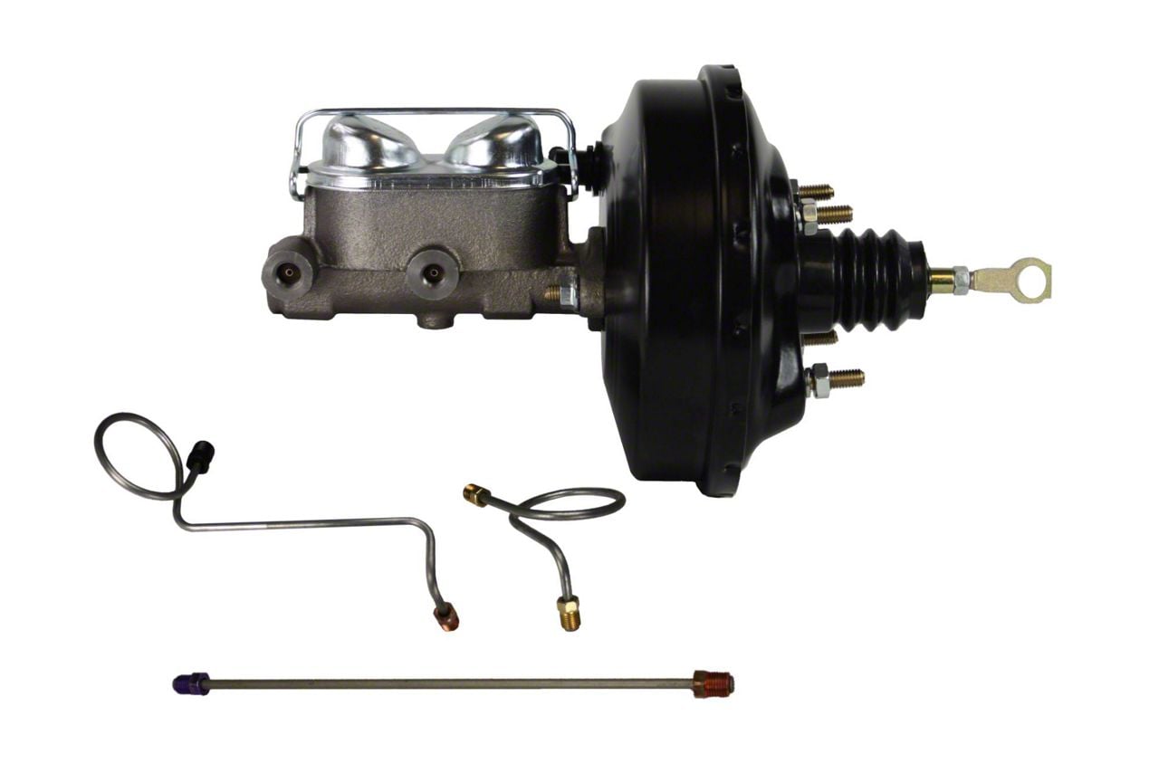 Upgrade your manual brake car to a 9 in. slimline power booster and a 1 in. dual bore master cylinder with our quick install hydraulic brake booster kit. This 1971-73 Mustang power booster kit allows you to upgrade your factory manual brake car in no time. In this 1971-73 Mustang hydraulic brake booster kit you receive the brake lines necessary to route from the new master cylinder to your factory distribution block. With this 1971-73 Mustang power booster kit you will also receive a pushrod adapter for your factory brake pedal. A great hydraulic brake booster kit with a factory look and easy installation! Designed for 4 wheel drum brake applications.