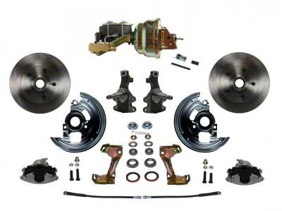LEED Brakes Power Front Disc Brake Conversion Kit with 9-Inch Brake Booster, Side Mount Valve, 2-Inch Drop Spindles and Vented Rotors; Zinc Plated Calipers (68-74 Chevy II, Nova w/ Front Disc & Rear Drum Brakes)