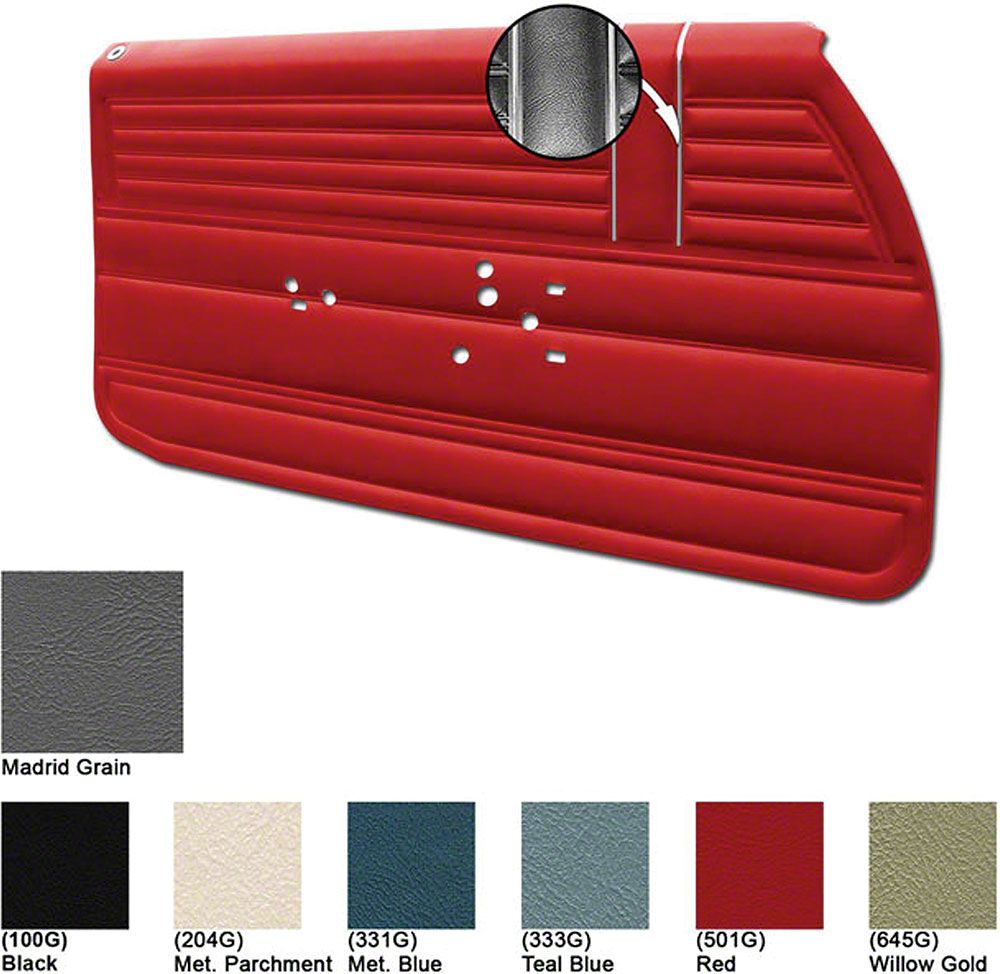 Demand the best for your restoration, order Legendary Interior concours door panels. Correct in every way, from the correct grain Madrid grain vinyl with chrome accent strips to the Multi-level construction 3-Dimensional Panel. These will make your restoration the best it can be.