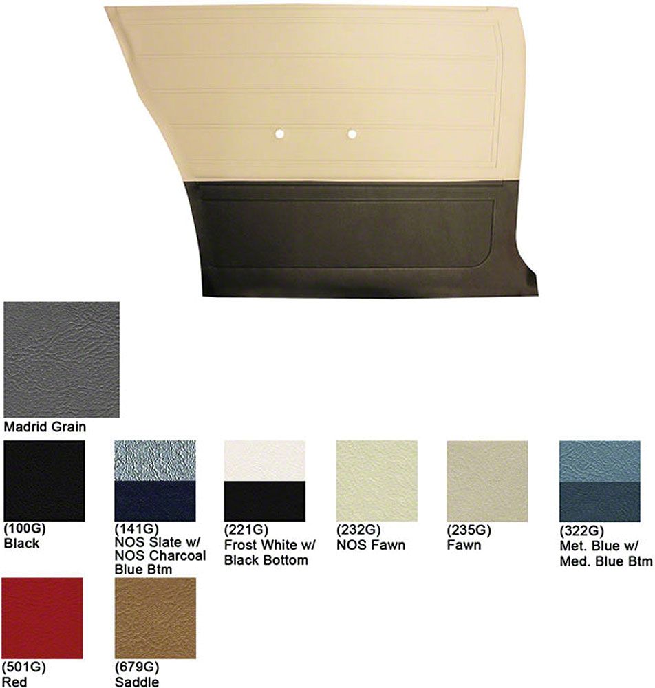 The Legendary quarter trim panels feature as original die-electrically heat sealed Madrid grain vinyl and special cutout area in filler board to accommodate armrest base. Padded multi level construction, 3 dimentional panel. Do not settle for good when you can get the best available in these Legendary interior parts
