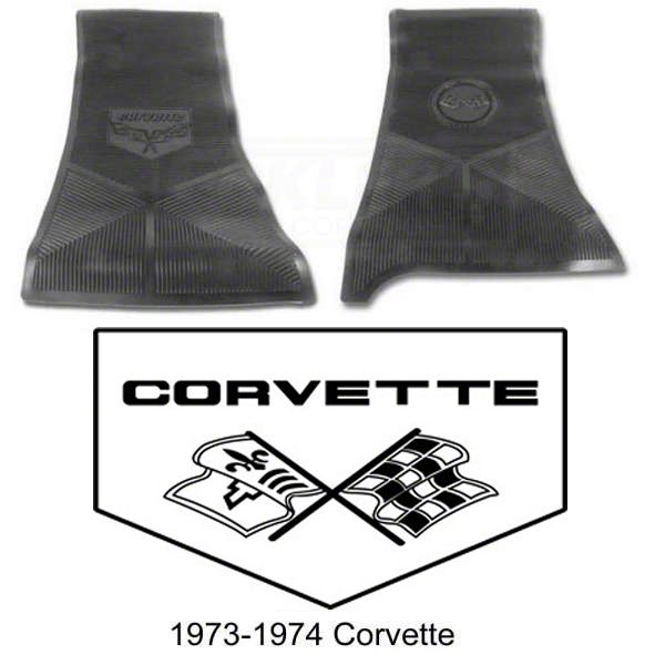 Keep your C3 Corvette's interior clean with these premium quality rubber floor mats from Legendary Auto Interiors. These floor mats feature an officially licensed GM logo. The mats feature a patented sure grip anti-skid backing that won't slide around. Their durable rubber construction is easy to clean with soap and water. Because they are backed by a 5-year limited manufacturer warranty, they are the best mats you can buy for the price. making them the best mats you can get for the price. Trust Eckler's for all your C3 1973 or 1974 Corvette restoration, accessory and performance parts needs.