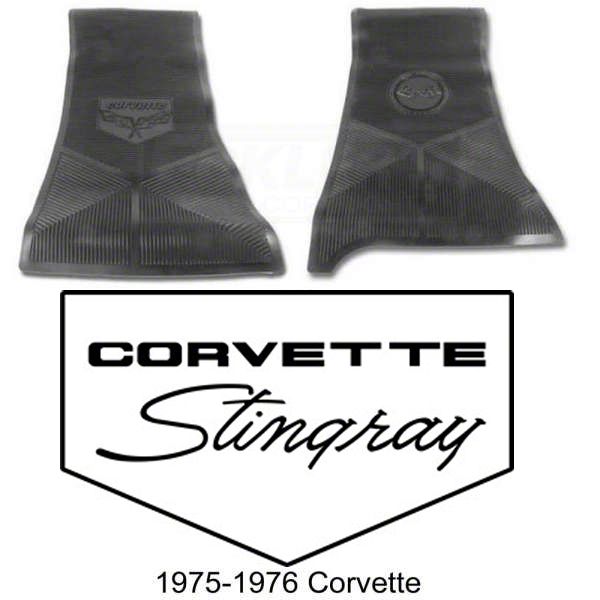 Keep your C3 Corvette's interior clean with these premium quality rubber floor mats from Legendary Auto Interiors. These floor mats feature an officially licensed GM logo. The mats feature a patented sure grip anti-skid backing that won't slide around. Their durable rubber construction is easy to clean with soap and water. Because they are backed by a 5-year limited manufacturer warranty, they are the best mats you can buy for the price. making them the best mats you can get for the price. Trust Eckler's for all your C3 1975-1976 Corvette restoration, accessory and performance parts needs.
