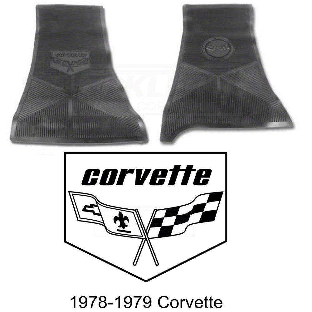 Keep your C3 Corvette's interior clean with these premium quality rubber floor mats from Legendary Auto Interiors. These floor mats feature an officially licensed GM logo. The mats feature a patented sure grip anti-skid backing that won't slide around. Their durable rubber construction is easy to clean with soap and water. Because they are backed by a 5-year limited manufacturer warranty, they are the best mats you can buy for the price. making them the best mats you can get for the price. Trust Eckler's for all your C3 1978-1979 Corvette restoration, accessory and performance parts needs.