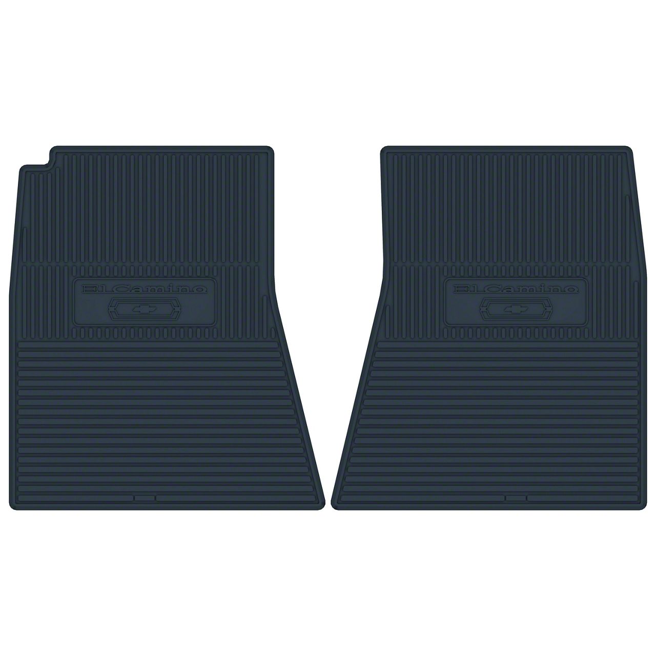 Note: The El Camino Store is proud to offer this reproduction of the two-piece floor mat set. This set is not the one-piece style which runs from floor pan to floor pan and over the transmission hump which would be in place on a carpet delete car. Please allow 4-6 weeks delivery time as these are unique, special order mats.