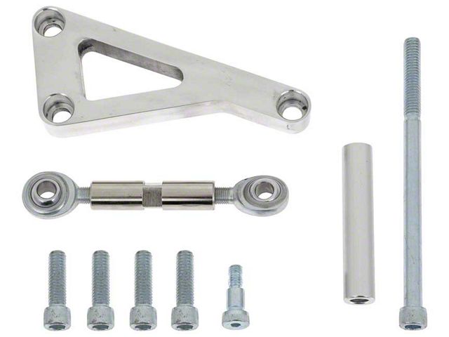 This convenient aluminum alternator bracket set is designed for small block Chevy engines with long style water pump. Will work to mount the alternator on the RH or passenger side of the vehicle using original holes in the water pump. Will work on engines that have the power steering pump positioned on the LH or driver side of the vehicle. Hardware is included.