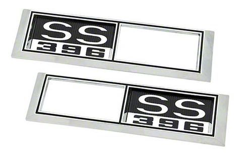 Reproduction of the original SS 396 front fender side marker bezels designed use with 1968-69 Chevrolet Impala, Bel Air, Biscayne, Caprice, Nova, Chevelle, and El Camino models. Each bezel is manufactured in quality die-cast zinc, chrome plated, and features correct black and white accents as original. These bezels insert directly over the side marker lens assembly and act as a chrome trim part. Sold in pairs. Includes RH and LH side marker bezel.