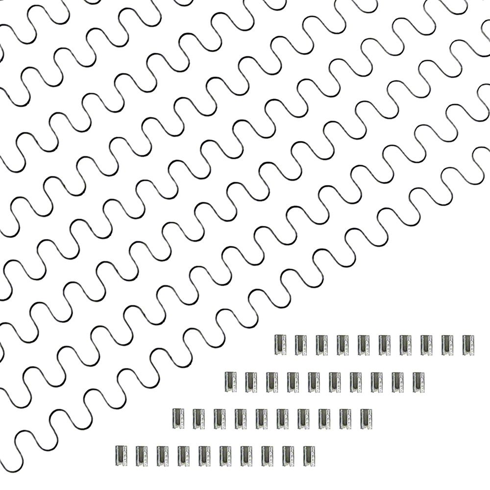 Front upper bench seat spring repair set for various 1958-64 Chevrolet full size passenger car models. This complete repair kit is a reproduction of the original GM part. This kit includes all the upper seat spring material, edgewire, and clips required to do a complete upper seat restoration. NOTE: the springs do not come pre-assembled. The spring material and edgewire will come in a coil and will have to be cut, bent and formed to the proper lengths. The spring pattern fits wonderfully with the original wire. We recommend that you keep the original seat wire to use as a pattern to know where to bend and cut the springs. Fits 4-door hardtop/sedan/wagon.