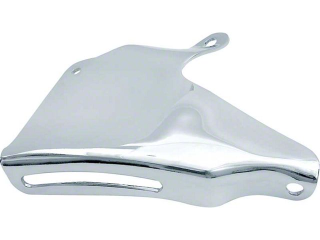 Chrome reproduction big block upper alternator bracket with factory intake manifolds. This bracket is for use with long water pumps on models equipped with an original big block engine.